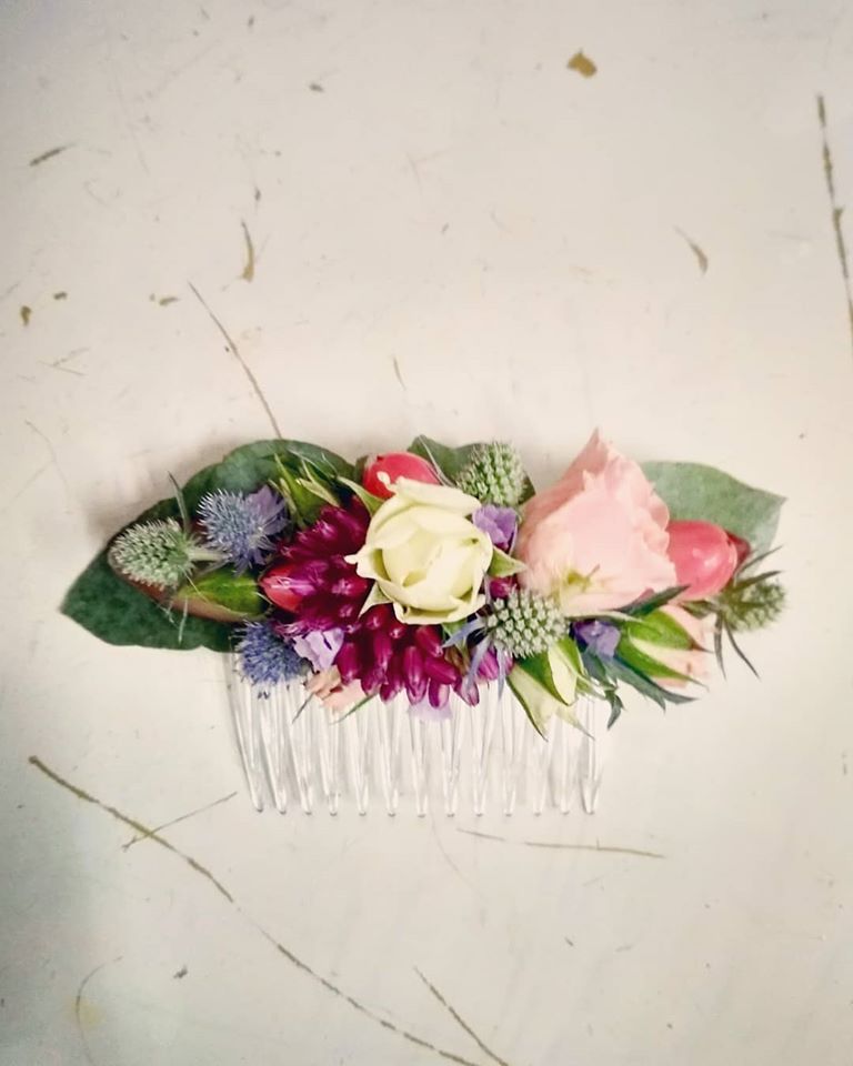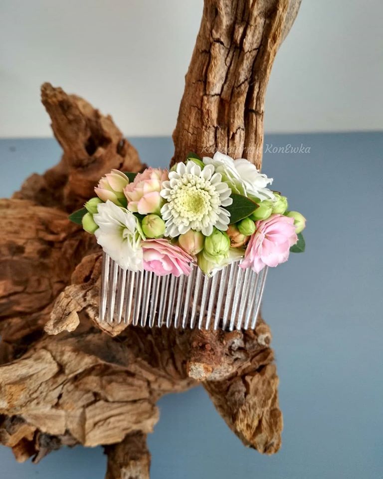 W ofercie kwiatowe ozdoby do włosów: wianki, grzebyki i inne.