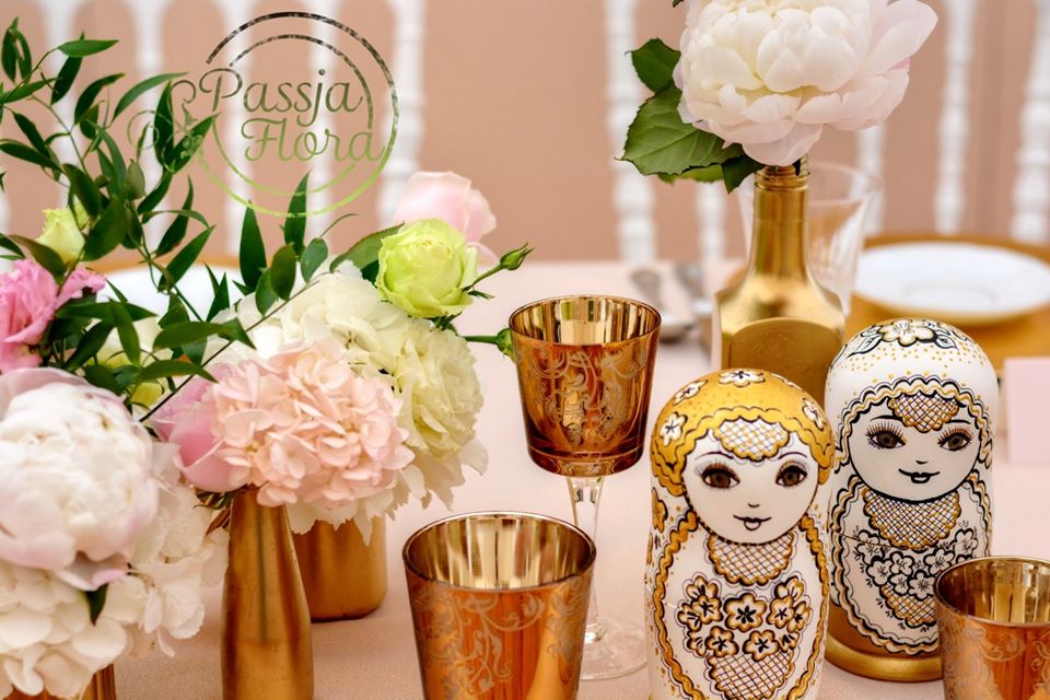 Złoto-różowa aranżacja sali