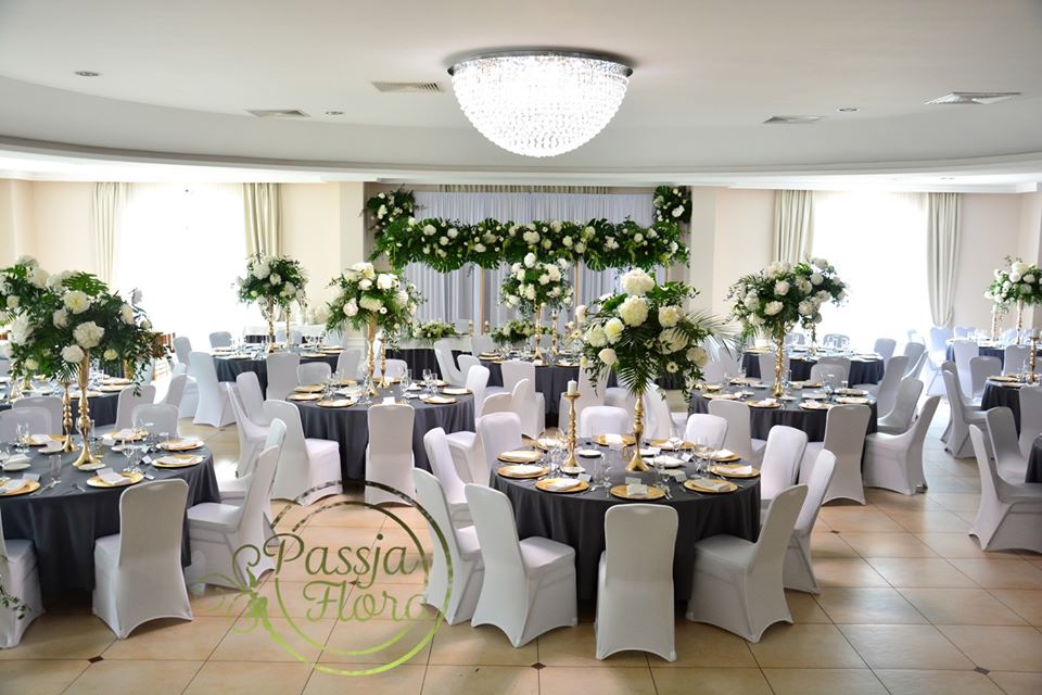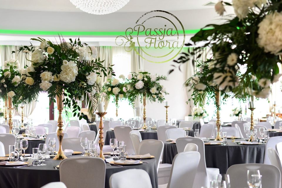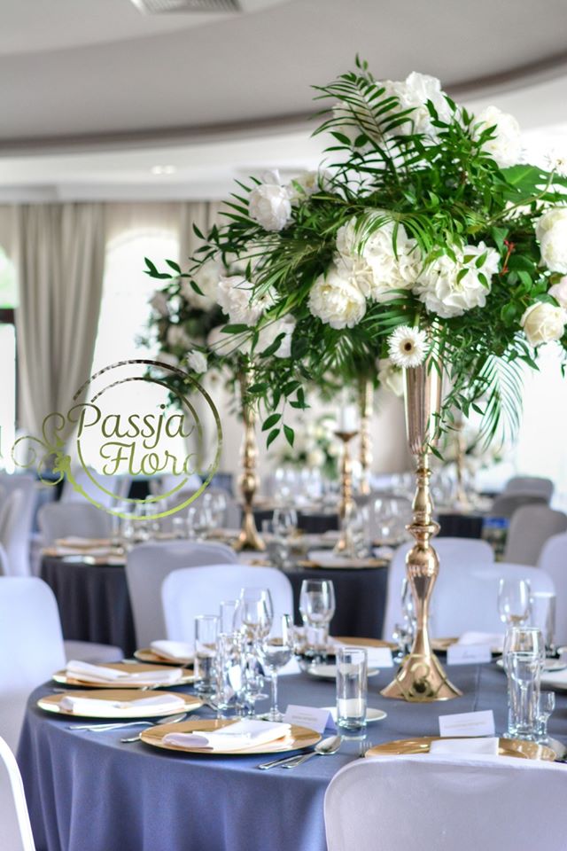 Biel i zieleń w towarzystwie złota to ślubna klasyka.