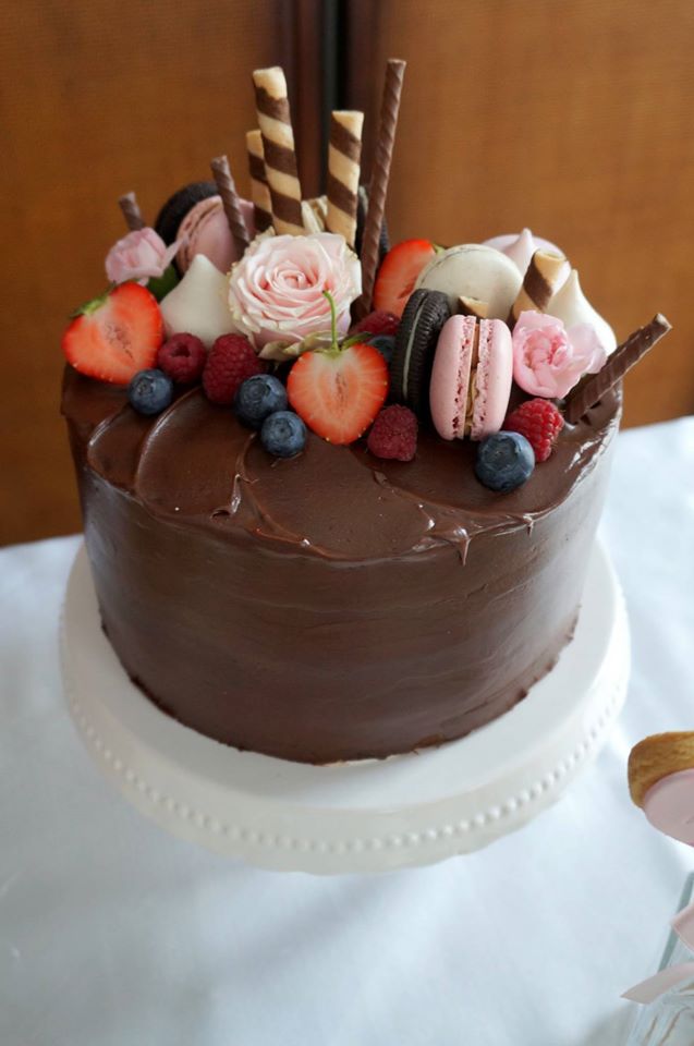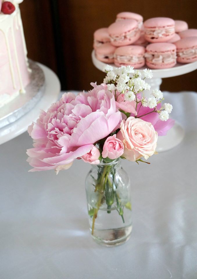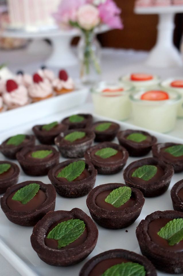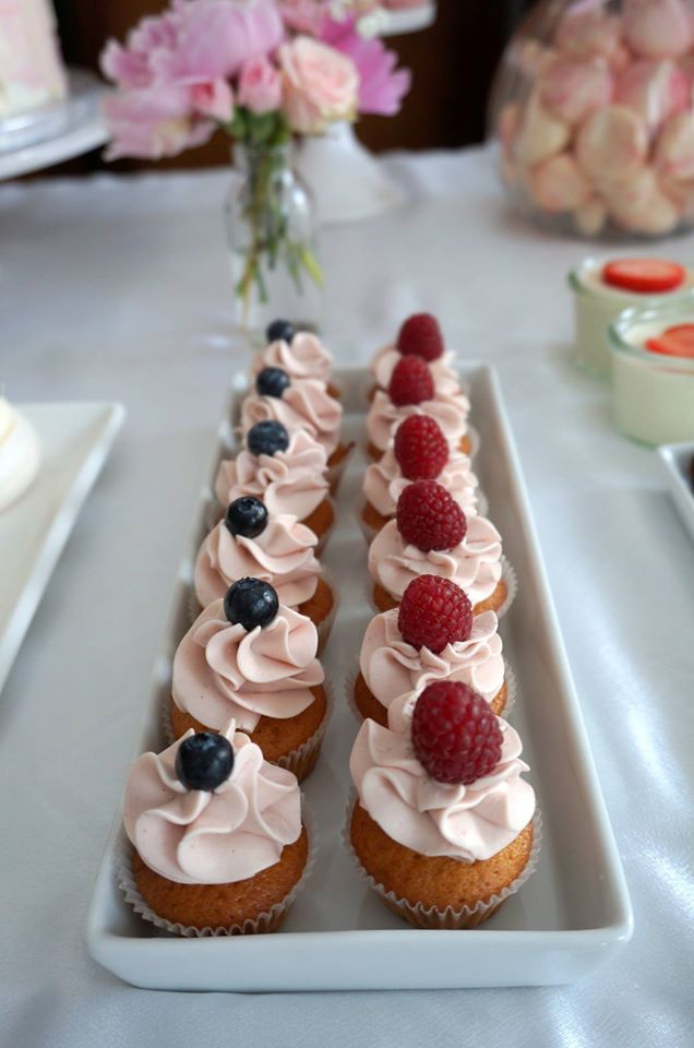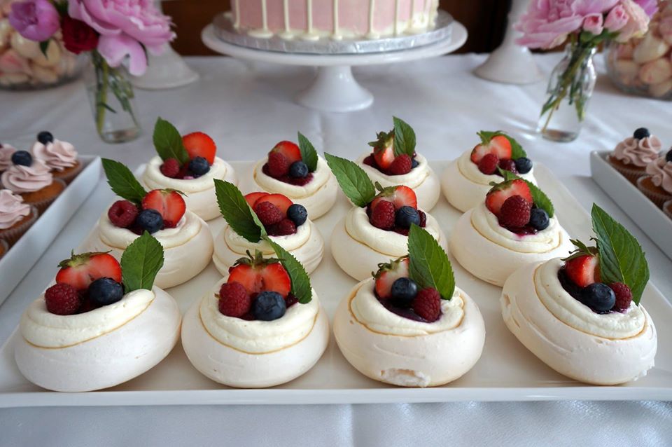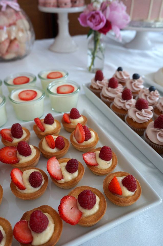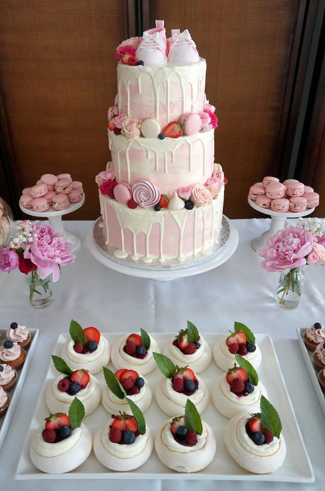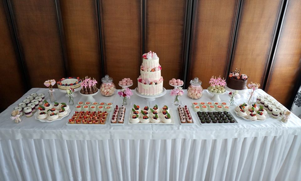 Słodkości oraz torcik przygotowane na 70 osób - słodko i dziewczęco.