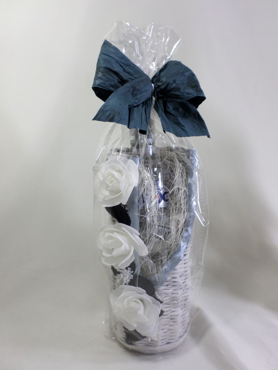 Wiklinowe pojemniki na alkohol, które idealnie się sprawdzą jako forma opakowania prezentu.