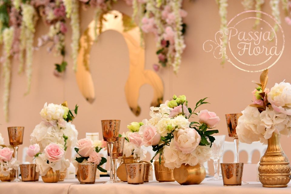Złoto-różowa aranżacja sali