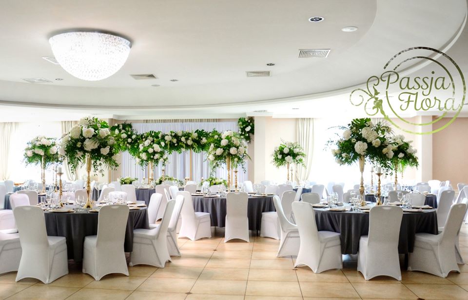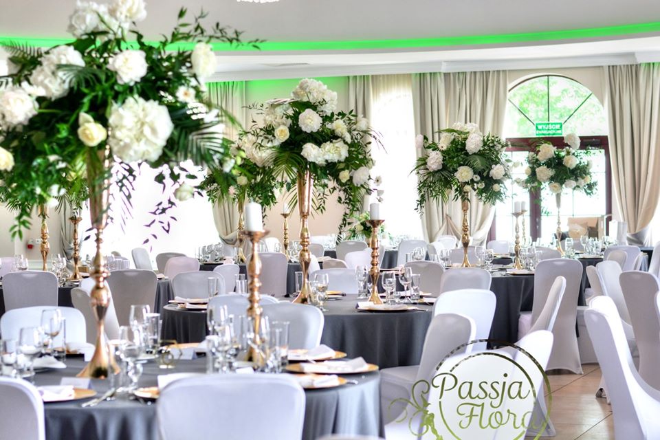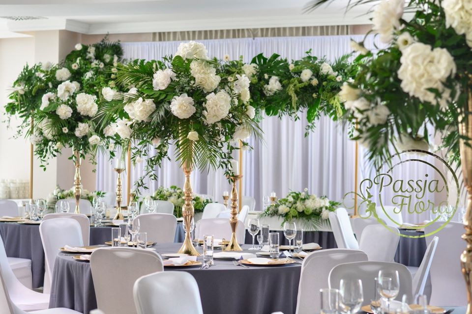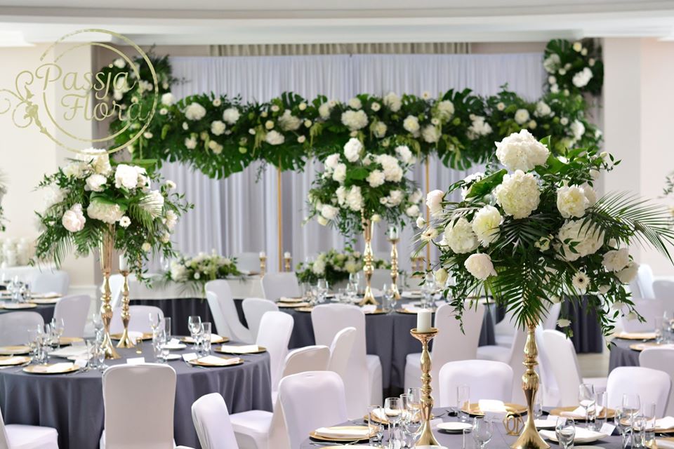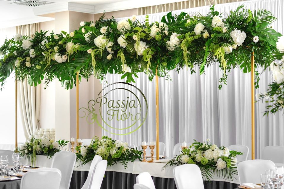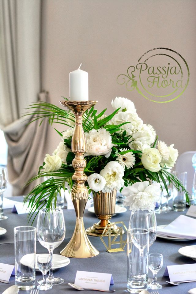 Biel i zieleń w towarzystwie złota to ślubna klasyka.
