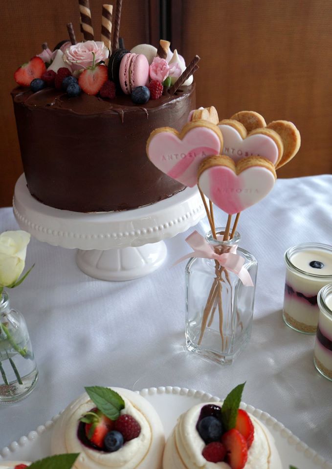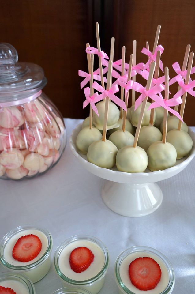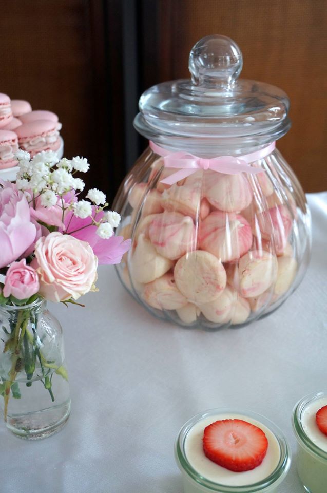 Słodkości oraz torcik przygotowane na 70 osób - słodko i dziewczęco.
